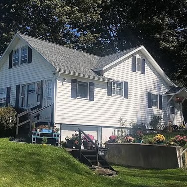 EXTERIOR – large grassy yard. Parking area. Sits on roadside. Public water & sewer.